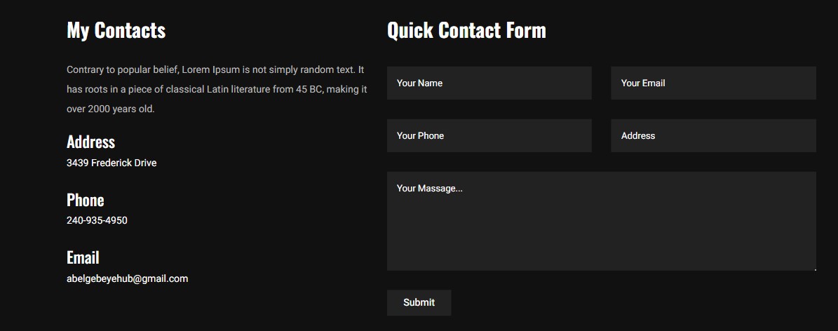 My name is Abel belay from Williamsburg, Verginia I have a strong background in web development, having worked as both a front-end and back-end developer for several years. My skills include HTML, CSS, JavaScript, ReactJS, NodeJS, PHP, and MySQL. I am also familiar with popular frameworks such as Bootstrap and Laravel.